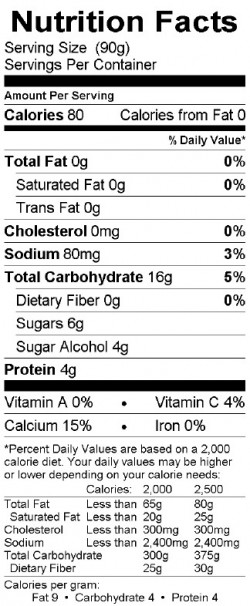 Nonfat Milk, Sorbitol, Maltodextrin, Milk, Whey, Artificial Vanilla, Mono-and Diglycerides, Cellulose Gel, Cellulose Gum, Locust Bean Gum, Carrageenan, Lactic Acid, Sucralose, Caramel Color